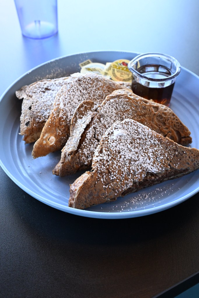 But let’s talk about the thing I can’t stop thinking about—the Breakfast Sandwich #2. Eggs, bacon, cream cheese and strawberry jam all stacked in perfect harmony on a homemade biscuit. It’s salty, sweet, creamy, and dreamy—and honestly, I haven’t shut up about it since. My husband keeps talking about how impressed he was with the pancakes!